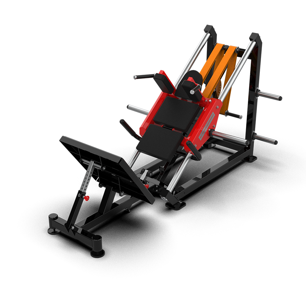 - Precise 45° Incline keeps the body stable under any load while reducing strain on the spine and knees.