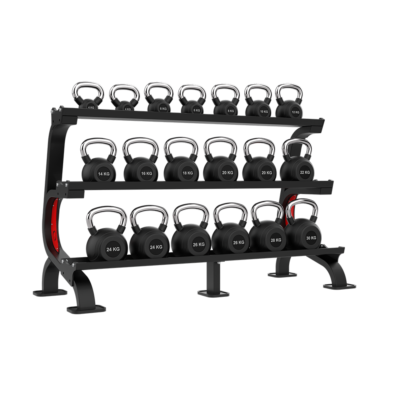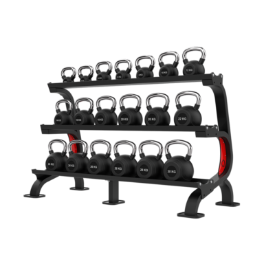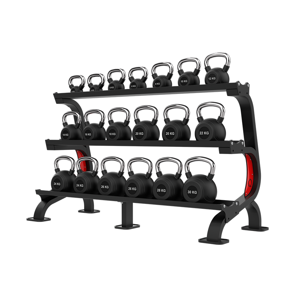 - Ergonomic Safety: Its height is carefully calibrated to enable easy access to kettlebells without excessive bending, helping to reduce strain on the back and spine, especially during heavy lifts. The trays prioritize safety by securely holding kettlebells in place to prevent them from falling or rolling out.