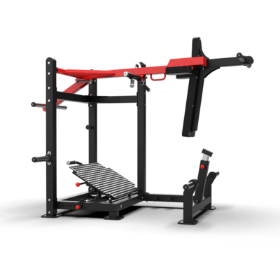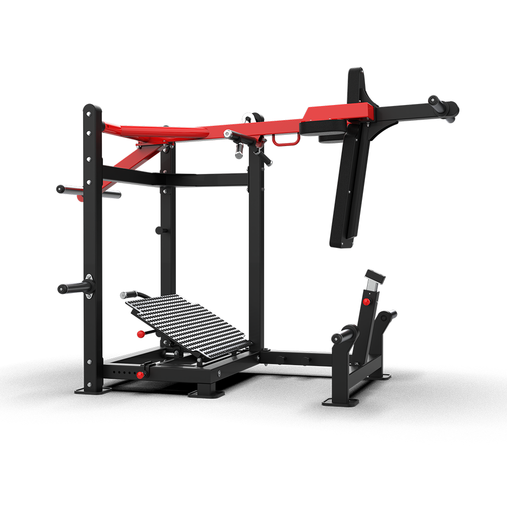 - Unique Movement: Combines elements of a squat and a 45° leg press, effectively stimulating the quadriceps and glutes without stressing the spine.