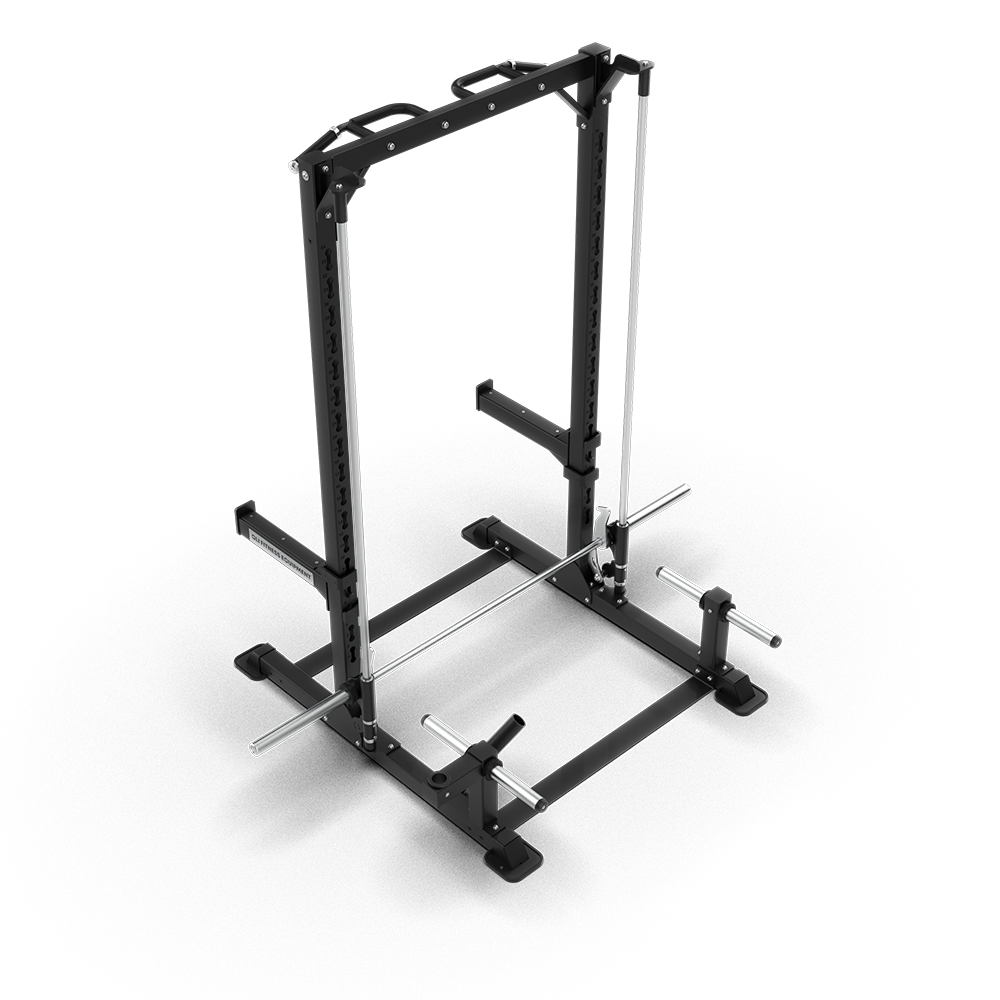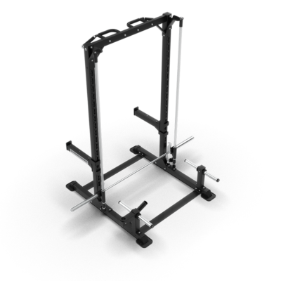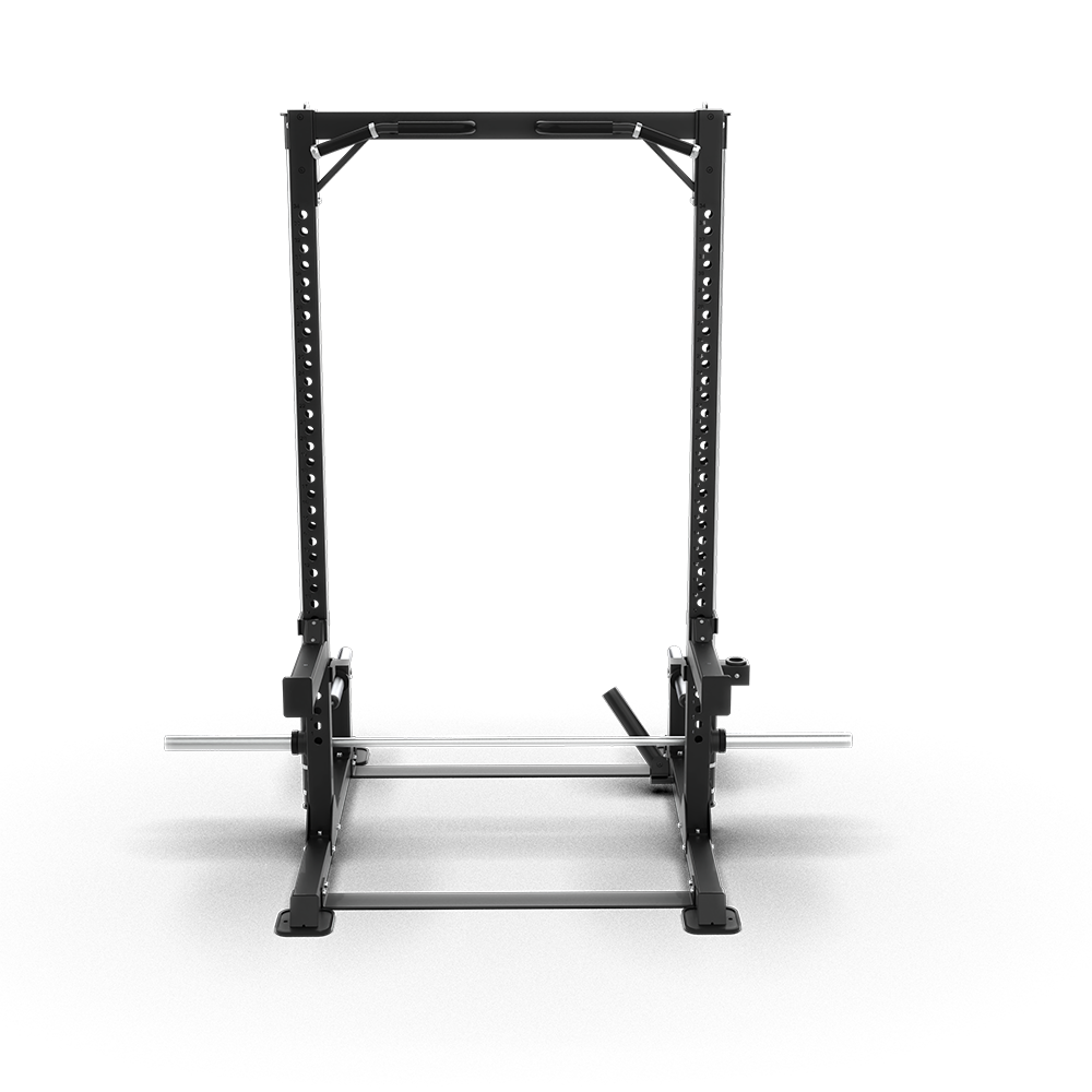 - Exercise Integration The rack is integrated with a barbell for a variety of exercises targeting different muscles such as the Glutes, Thighs, Forearms, and Abs.
